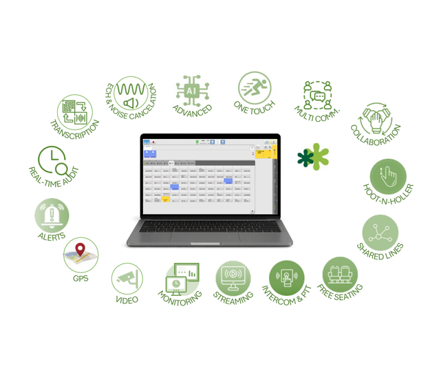Operators benefit from one-touch operations to establish numerous simultaneous call sessions across multiple audio devices, enabling seamless communication with IP phones, mobile devices, radios, or general endpoints—whether in hoot-n-holler mode, PTT sessions, real-time monitoring, or conferencing.